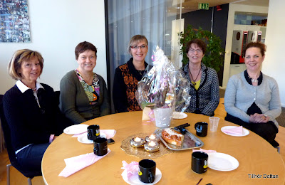 Vi åt tillsammans innan det var dags för Lennart att ge sig ut på jobb. Vi hann att prata en hel del och fika innan de gick vidare till Aditro, för att träffa "vår" lönetjej. Jag fick ett tjusigt halsband i silver av mina kollegor,